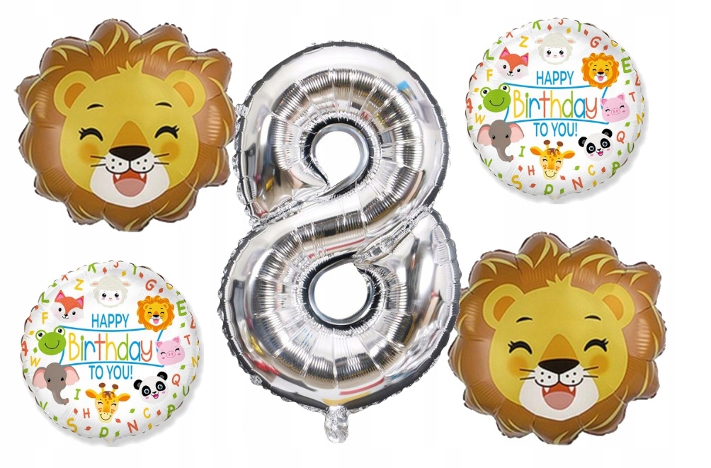 Balony na ósme cyfra 8 urodziny zwierzęta lew