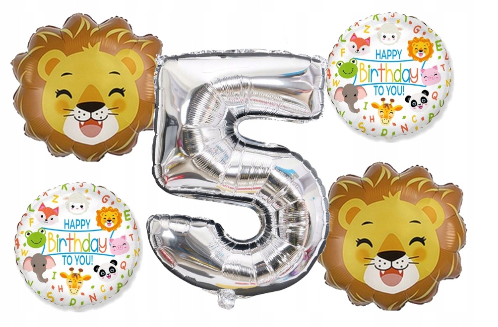 Balony na piąte cyfra 5 urodziny zwierzęta lew