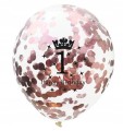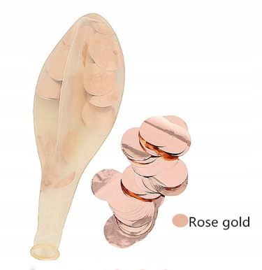 ZESTAW BALONÓW GUMOWYCH Z KONFETTI w kolorze różowego złota ROSE GOLD na roczek.