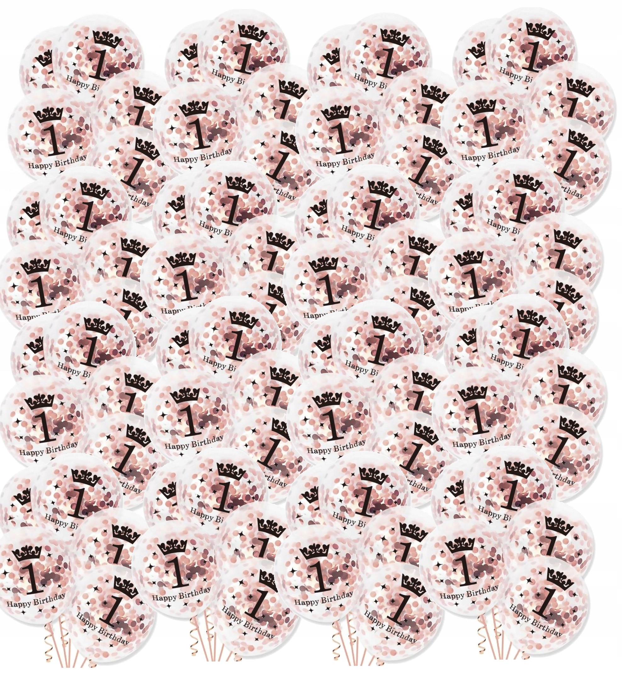 Balony z konfetti na roczek rose GOLD 100 szt 34 c