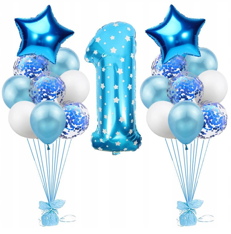 Balony z konfetti niebieskie roczek 1 pierwsze