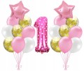Balony z konfetti różowe roczek 1 pierwsze urodzin