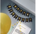 Baner urodzinowy w kolorze czarnym ze złotym napisem Happy Birthday to idealna dekoracja na każdą imprezę urodzinową.