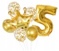 Zestaw balonów na 5 urodziny w kolorze złota.