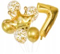 Zestaw balonów na 7 urodziny w kolorze złota.