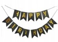 Baner urodzinowy w kolorze czarnym z złotym napisem Happy Birthday to idealna dekoracja na każdą imprezę urodzinową.