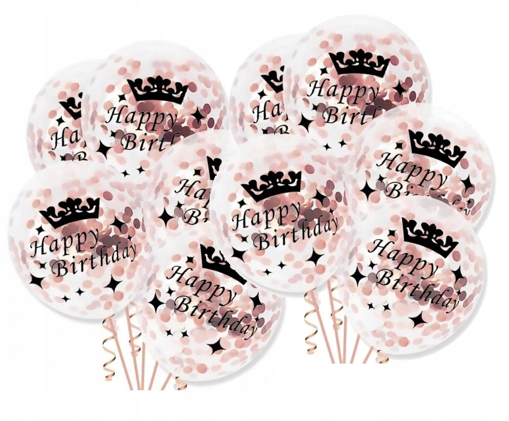 ZESTAW BALONÓW GUMOWYCH Z KONFETTI w kolorze RÓŻOWEGO ZŁOTA.
