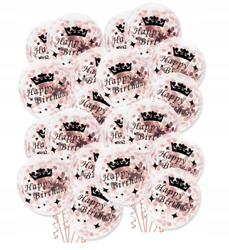 Duże balony z konfetti różowe złoto birthday 20szt