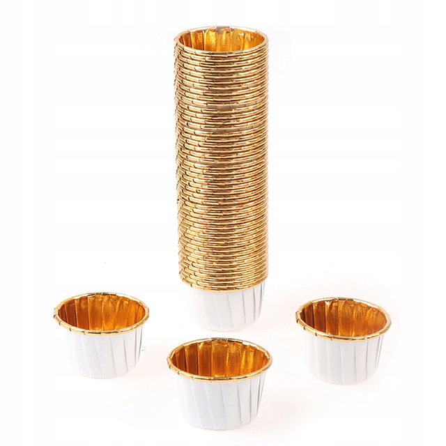 Aluminiowe foremki na babeczki muffinki złoto białe - 50 szt.