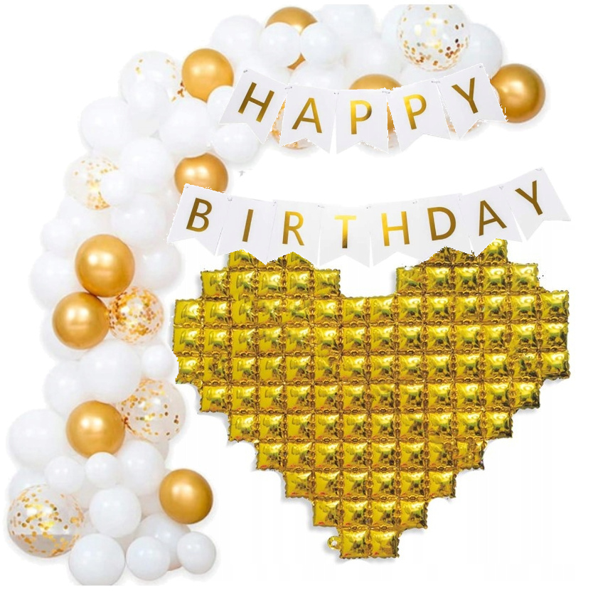 Girlanda balonowa biała złota tło urodziny baner