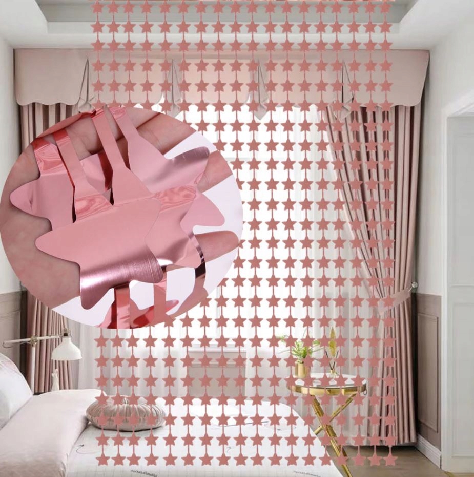 KURTYNA metaliczna samoprzylepna rose gold gwiazdy
