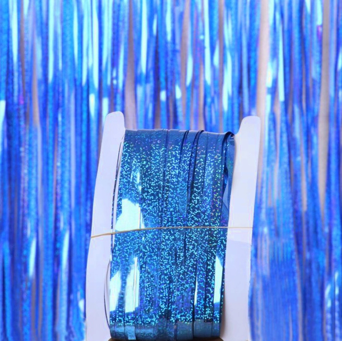 KURTYNA samoprzylepna niebieska holograficzna 1x2m