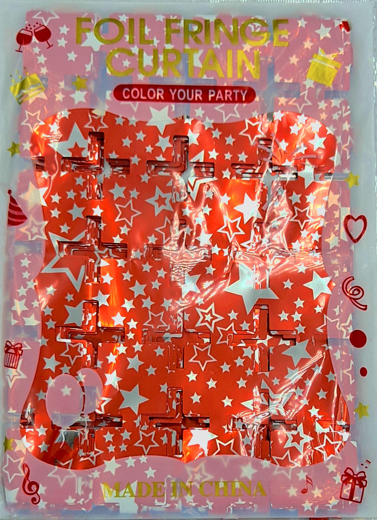 Kurtyna foliowa czerwona w gwiazdki panelowa 1x2 m