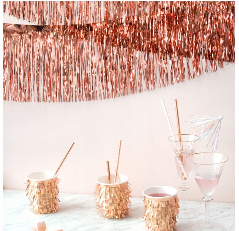 Kurtyna rose gold, dzięki której ozdobisz pomieszczenie w którym odbywa się impreza. Kurtyna długości aż 275 cm to niezbędny dodatek na imprezę urodzinową. Kurtynę możesz dociąć na mniejsze kawałki aby zrobić z niej wymarzoną aranżację.