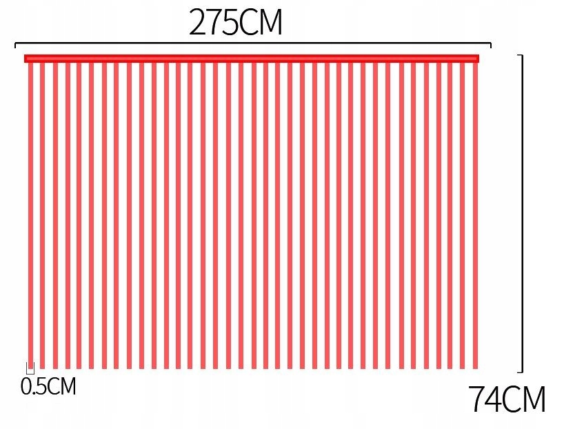 Kurtyna dekoracyjna 74 cm x 275 cm. Jest bardzo lekka, dlatego z łatwością można ją zawiesić w drzwiach / przejściu, oknach na ścianie lub ozdobić nią boki stołu.