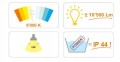 - Moc 150 W (odpowiada żarówce tradycyjnej ok 1200 W)