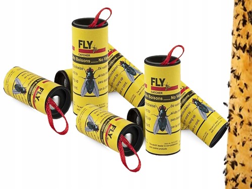 Lep na muchy muszki pułapka taśma lepowa 4 rolki komary owady