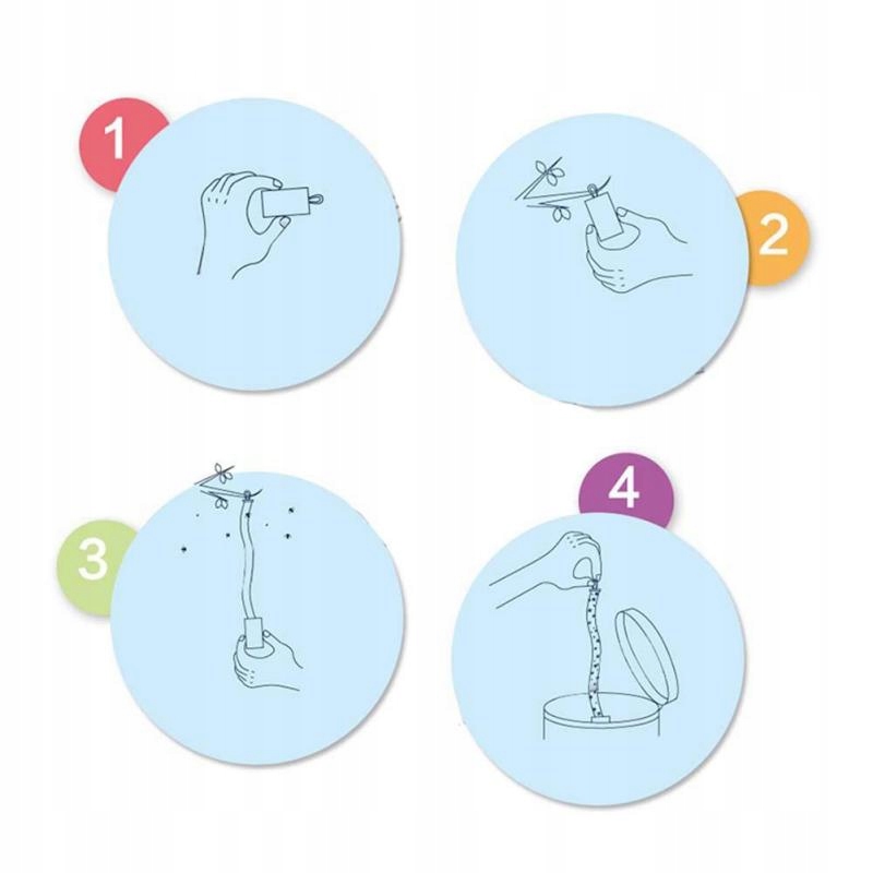 Wystarczy chwilę ocieplić rolkę w dłoniach zdjąć wieczko rolki i pociągnąć za sznureczek ruchem obrotowym. Następnie rolkę przyczepiamy lub przyklejamy za pomocą sznureczka w miejscu gdzie owadów jest najwięcej. Najlepiej, żeby nie było to miejsce intensywnie nasłonecznione bądź w przeciągu, wtedy rolka posłuży nam dłużej.