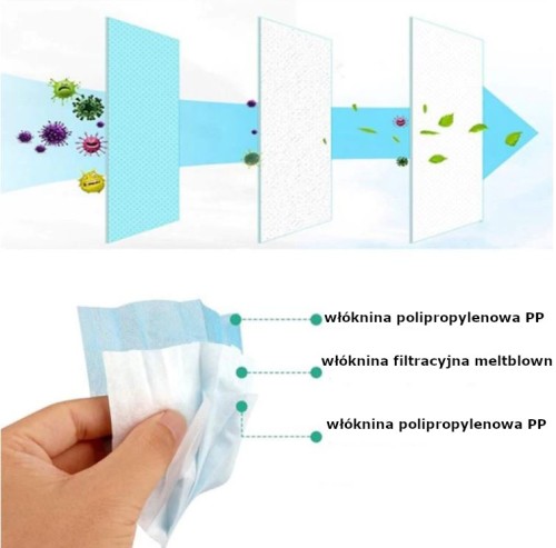 - wykonana z niepylącej, 3-warstwowej włókniny polipropylenowej wysoki stopień filtracji 95 - 98%