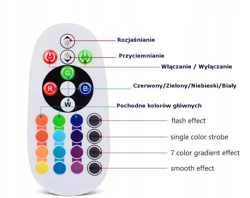 - wbudowane opcje świecenia/przechodzenia kolorów