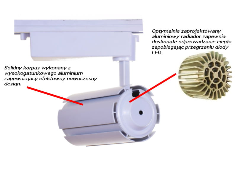 Nasz Reflektor stosuje się w systemach oświetlenia opartych o szyny 1-fazowe.