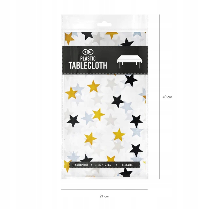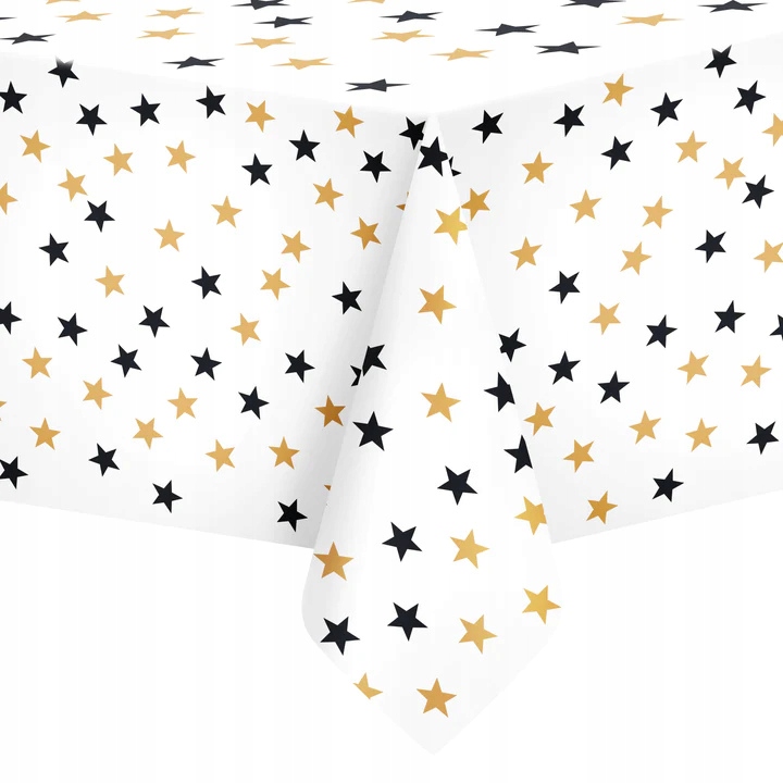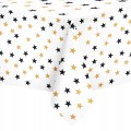 Obrus plamoodporny foliowy 137x274 cm biały w złote czarne gwiazdki gwiazdy