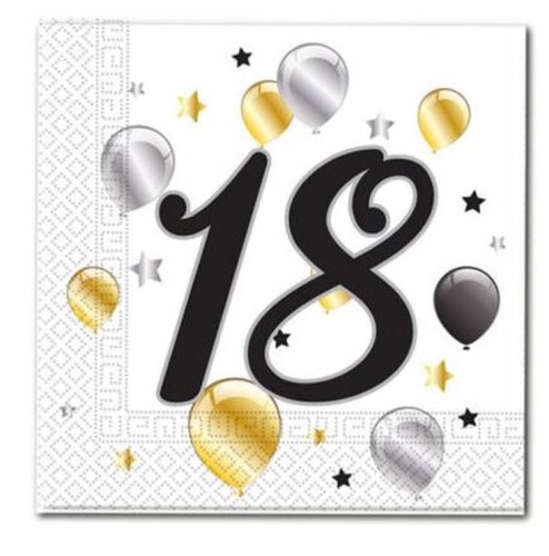 Papierowa serwetka dwuwarstwowa z nadrukiem na 18 urodziny.