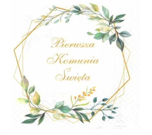 Papierowa serwetka ze złotym motywem komunijnym - 20 szt.