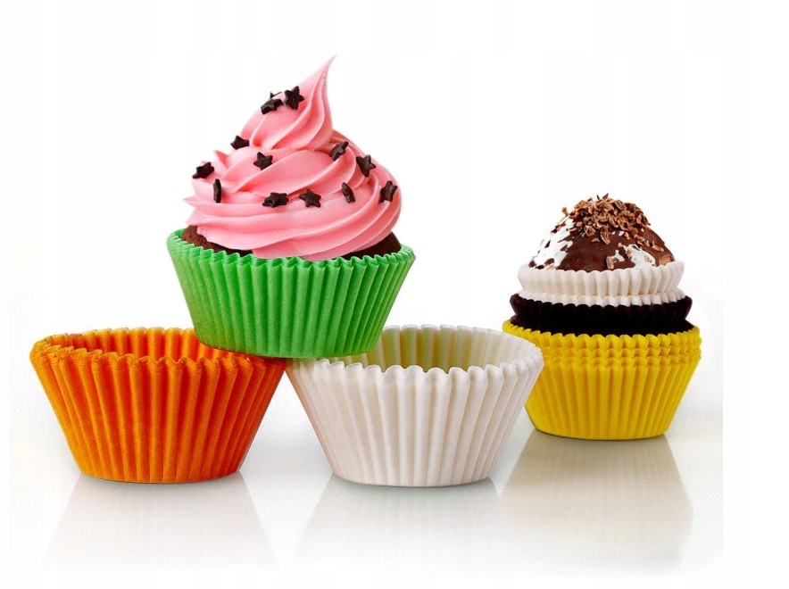 W zestawie znajduje 100 sztuk papierowych foremek do pieczenia muffinek i babeczek.