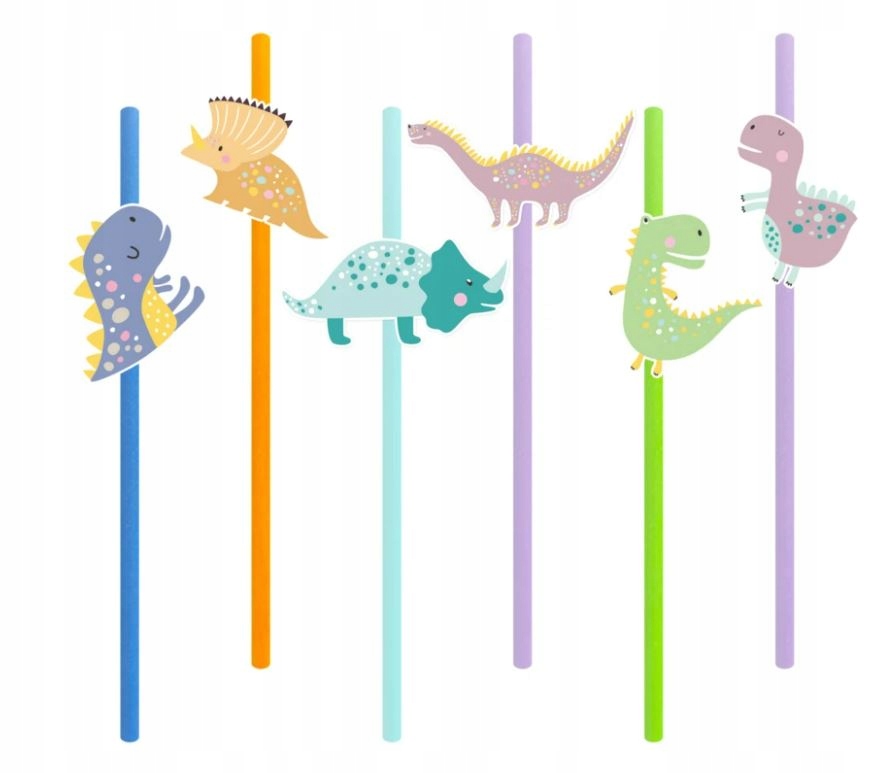 Słomki BIO papierowe dinozaury urodziny roczek 6sz