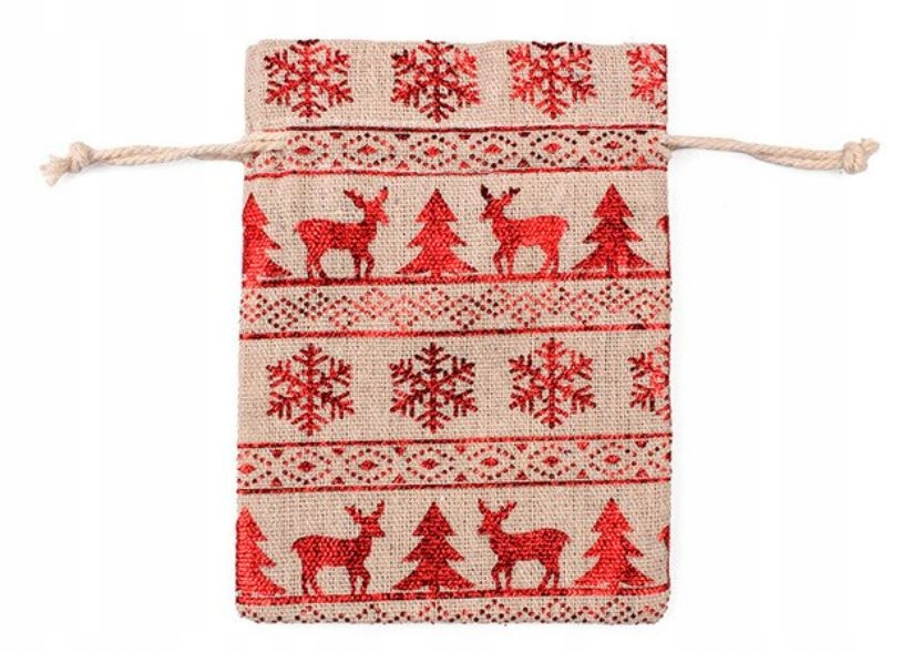 Świąteczne woreczki jutowe prezent 17x13 cm 2 szt