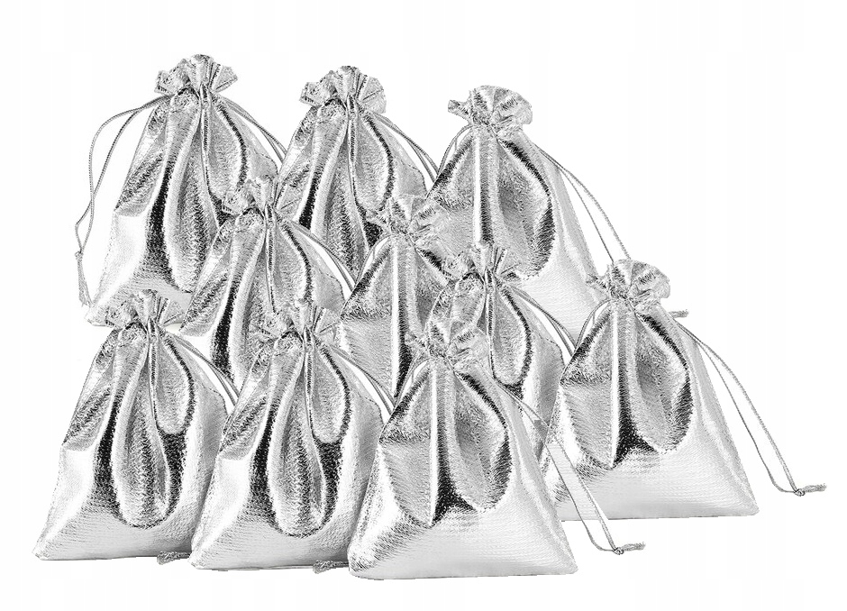 Świąteczne woreczki torebki srebrne prezent 10 szt