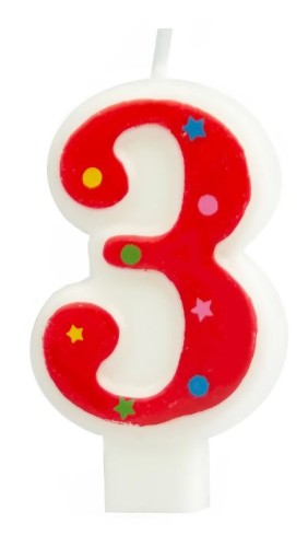 Świeczka urodzinowa 3 trzy na tort urodziny czerwo