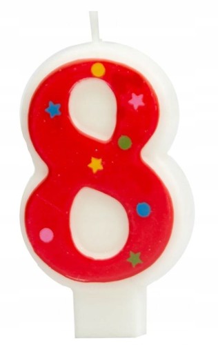 Świeczka urodzinowa 8 osiem na tort urodziny czerw