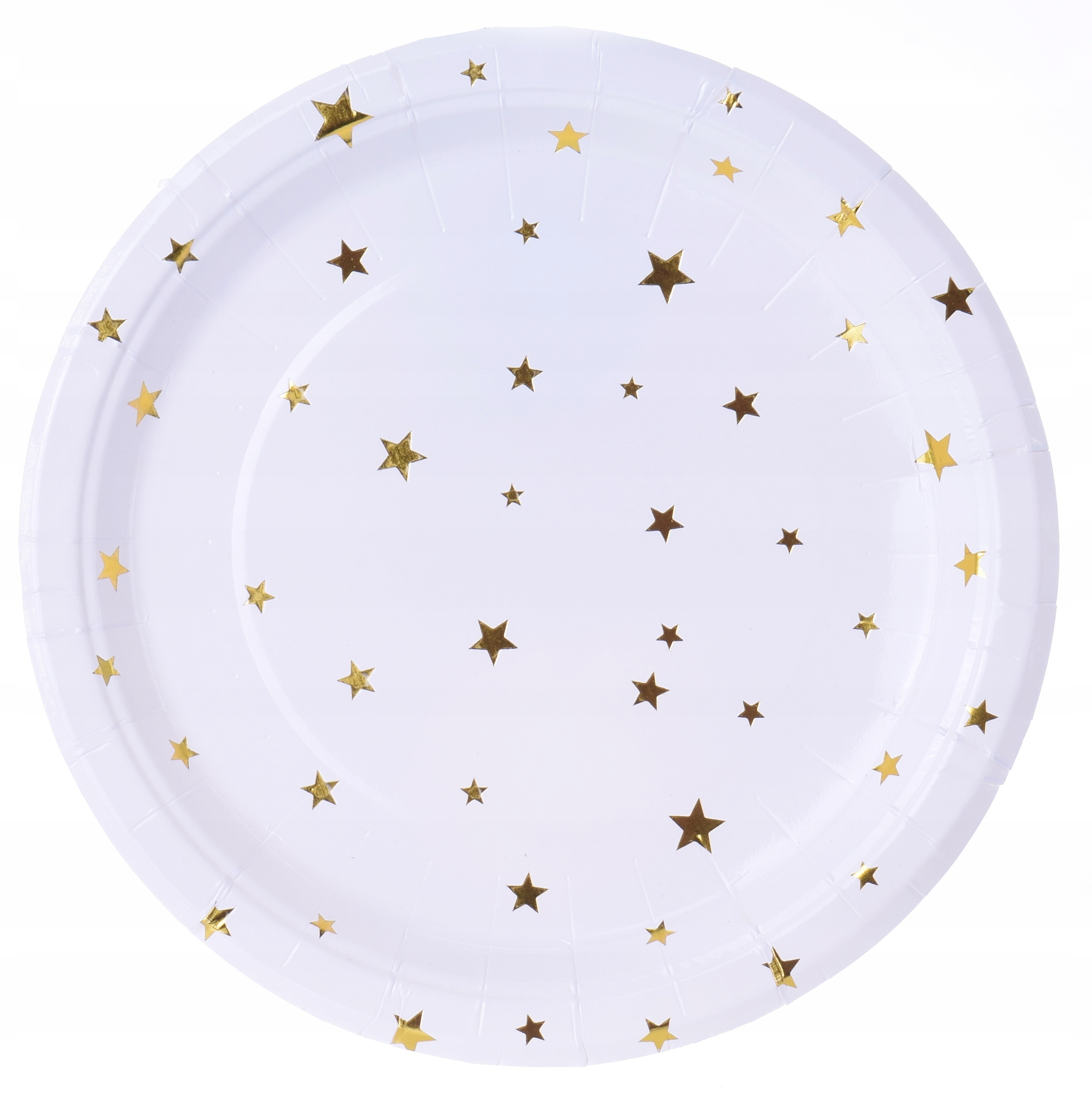 TALERZYKI białe papierowe złote gwiazdki urodziny