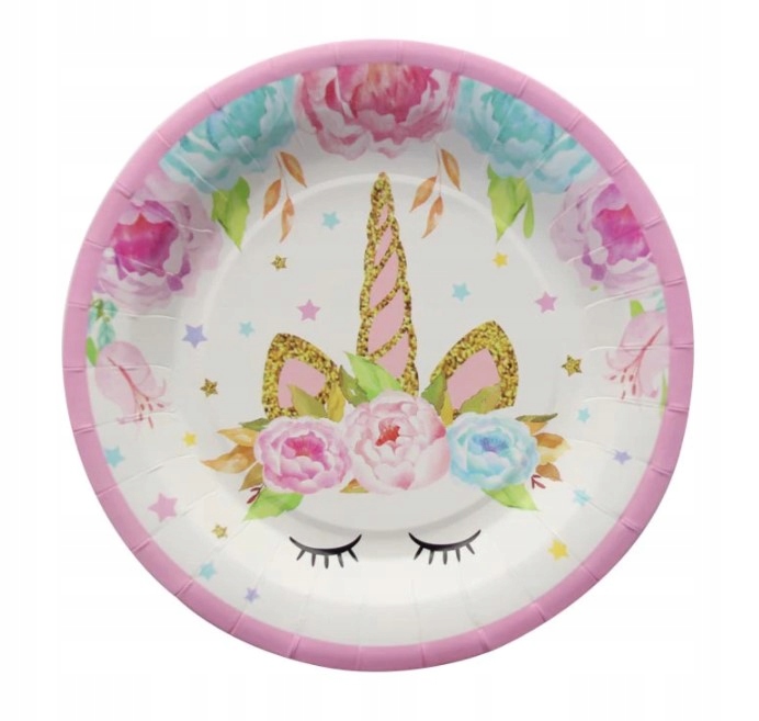TALERZYKI papierowe 18 cm urodziny 6szt jednorożec
