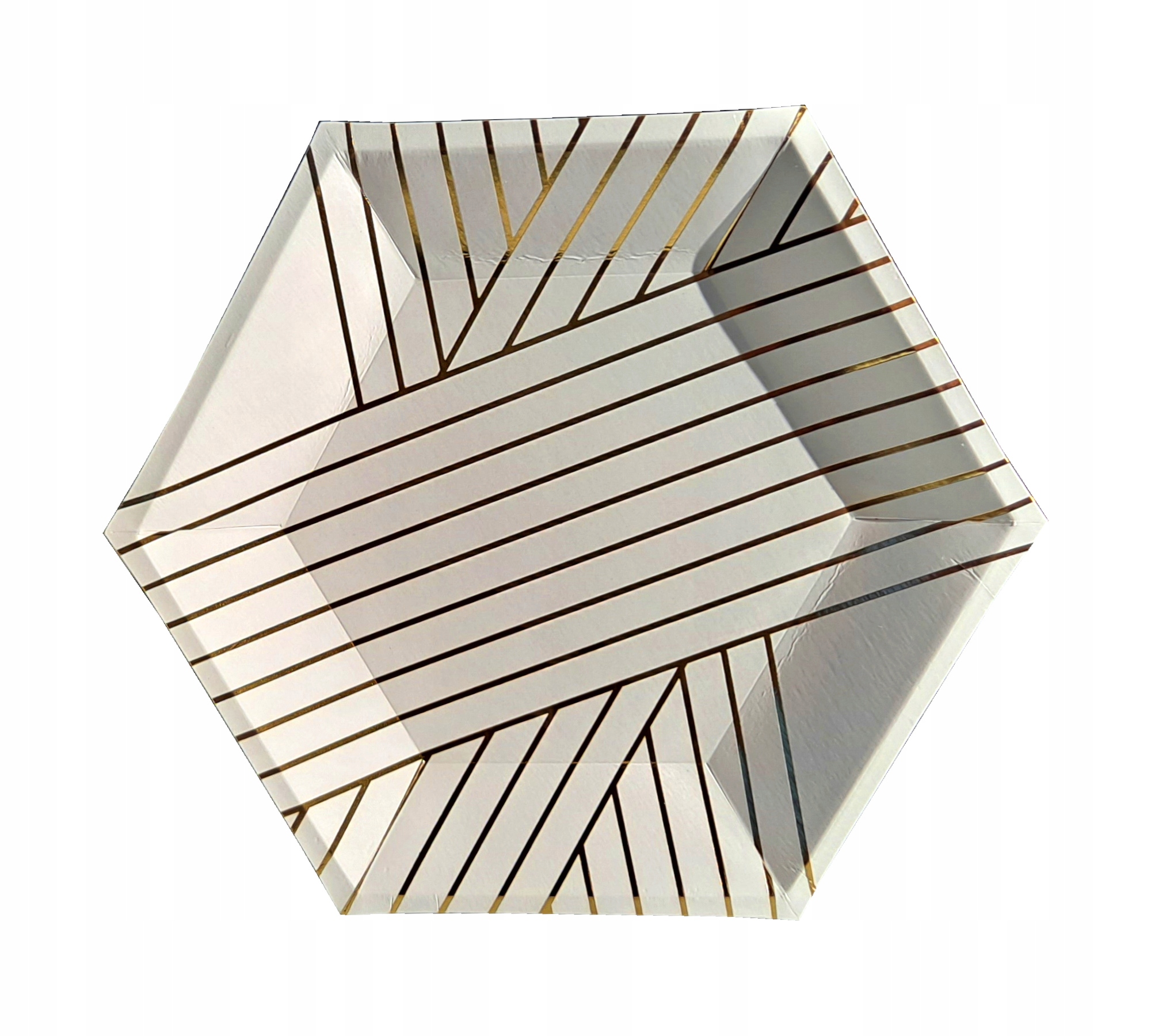 TALERZYKI papierowe białe złote 23 cm urodzinowe
