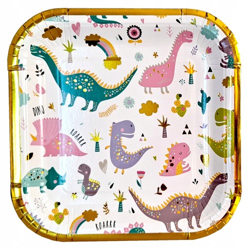 TALERZYKI papierowe dinozaury urodziny 18 cm 6 szt