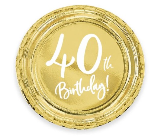 TALERZYKI papierowe złote 6 szt 40 urodziny 23 cm