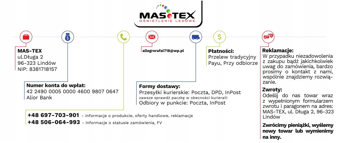 - Zasilanie 230V - NIE WYMAGA ZASILACZY (potrzebna wtyczka ze stabilizatorem aby światło nie "falowało")