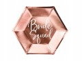 Komplet 6 sztuk wyjątkowych talerzyków w kolorze rose gold z napisem " Bride Squad" - idealna dekoracja na wieczór panieński.
