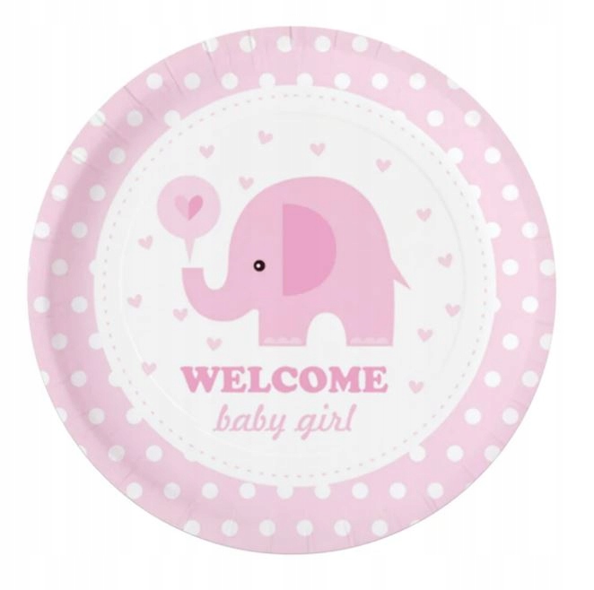 Talerzyki papierowe BABY SHOWER 6 sztuk różowe
