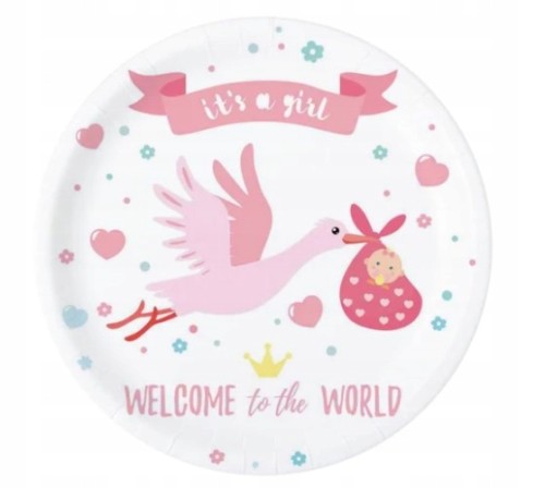 Talerzyki papierowe Baby Shower różowe 6 szt.