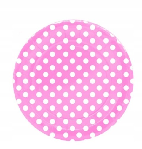 Talerzyki papierowe różowe w kropki - 18 cm - 10 szt.
