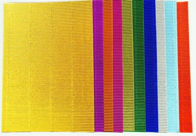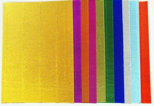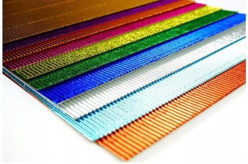 Zestaw 10 arkuszy papieru falistego kolorowego metalicznego w formacie A4.