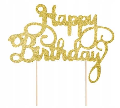 Topper urodzinowy złoty z brokatową strukturą. Stylowa dekoracja na tort. Niezbędny gadżet na urodziny oraz rocznice zarówno dla dzieci jak i dorosłych.