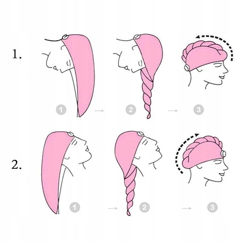 Ręcznik do suszenia włosów wykonany jest z mikrofibry, dzięki czemu jest zdrowy i bezpieczny dla skóry i włosów.