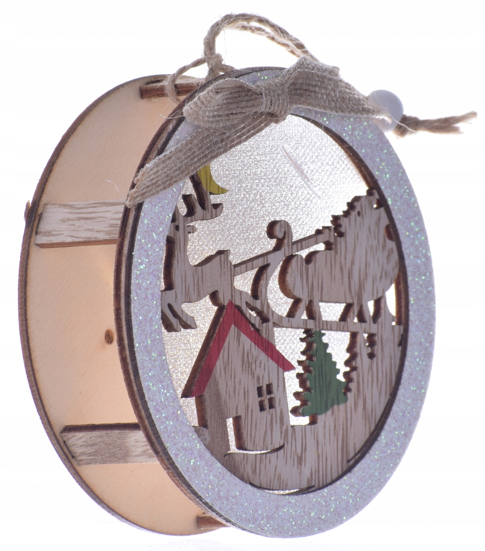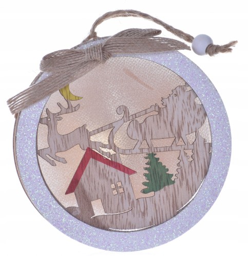 Witraż stroik LED drewniany bombka chatka sanie