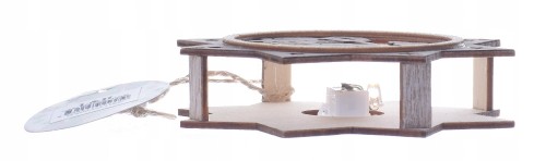 Ta oryginalna dekoracja przyciąga wzrok i jest wspaniałą ozdobą świątecznego okna, dekoracji stołu czy niepowtarzalną bombką na choince. Wbudowana dioda LED emituje ciepłe światło tworząc przyjemną, przytulną atmosferę. Dzięki zasilaniu na baterie bez problemu można ją przenosić w dowolne miejsce można postawić na półce, regale a także zawiesić w oknie, drzwiach itp