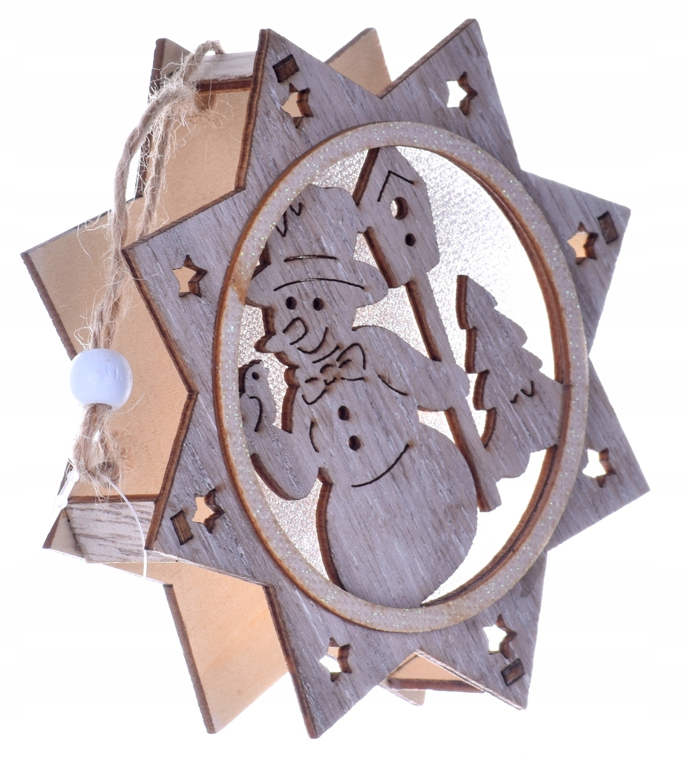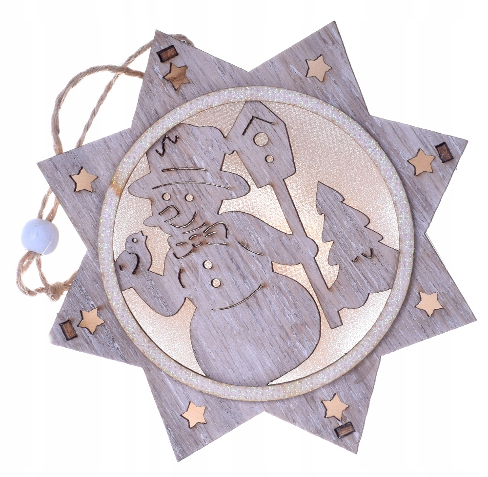 Witraż stroik LED drewniany bombka gwiazda bałwan
